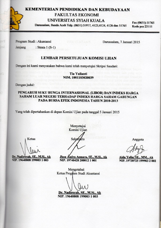TIA YULIANTI, PENGARUH SUKU BUNGA INTERNASIONAL (LIBOR) DAN INDEKS HARGA SAHAM LUAR NEGERI TERHADAP INDEKS HARGA SAHAM GABUNGANRNPADA BURSA EFEK INDONESIA TAHUN 2010-2013. Banda Aceh Universitas Syiah Kuala,2015