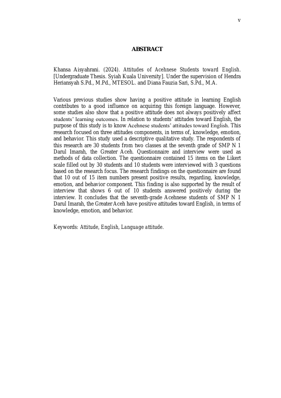 Baca Juga : ATTITUDES OF YOUNG STUDENTS TOWARDS THE USE OF ACEHNESE IN BANDA ACEH (QUALITATIVE STUDY AT SMAN 3 BANDA ACEH AND SMAN 1 KR.BARONA JAYA ACEH BESAR) (Khairun Nisak, 2018)