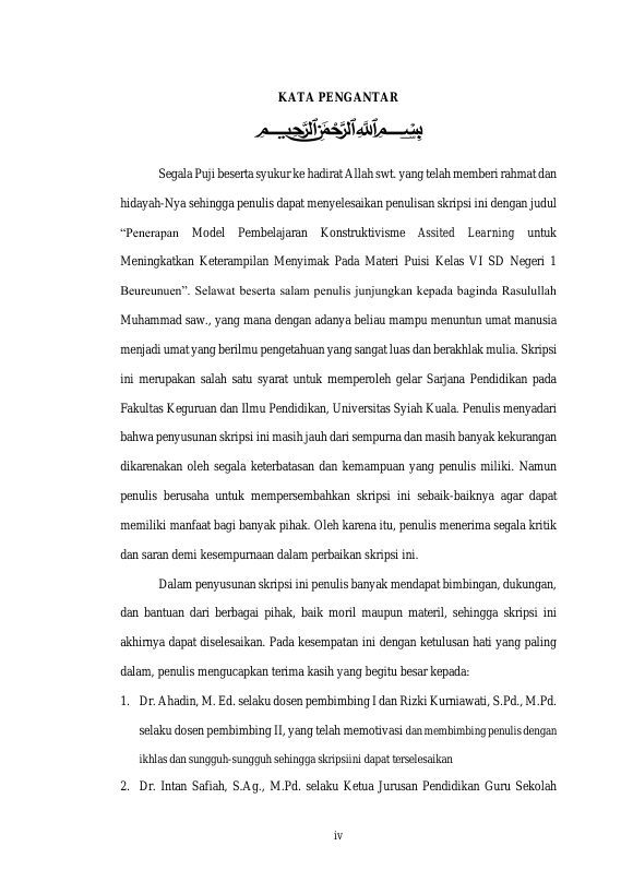 MENTARI, PENERAPAN MODEL PEMBELAJARAN KONTRUKTIVISME ASSISTED LEARNING UNTUK MENINGKATKAN KETERAMPILAN MENYIMAK PADA MATERI PUISI KELAS IV SD NEGERI 1 BEUREUNUEN. Banda Aceh Fakultas KIP PGSD (S1),2024