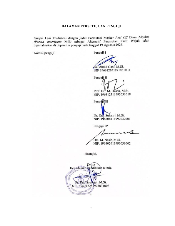 Baca Juga : FORMULASI MASKER PEEL OFF DAUN ALPUKAT (PERSEA AMERICANA MILL) SEBAGAI ALTERNATIF PERAWATAN KULIT WAJAH (Lani Fesdiateni, 2024)