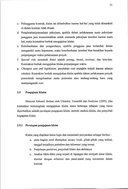 Rahmayuni, IDENTIFIKASI FAKTOR-FAKTOR PENYEBAB TERJADINYA KLAIM YANG BERPOTENSI MENIMBULKAN PERSELISIHAN (DISPUTE) OLEH KONTRAKTOR DI BANDA ACEH. Banda Aceh Fakultas Teknik,2008
