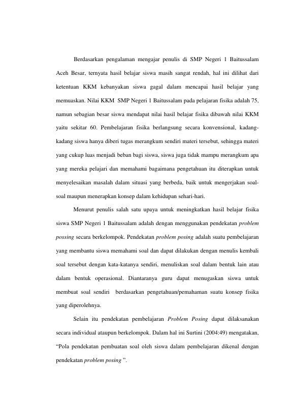 Baca Juga : PENERAPAN MODEL PEMBELAJARAN PROBLEM POSING UNTUK RNMENINGKATKAN HASIL BELAJAR PADA MATERI RNPESAWAT SEDERHANA SISWA KELAS VIII-6 RNMTSN TUNGKOB ACEH BESAR (Nurul Sakdah, 2015)