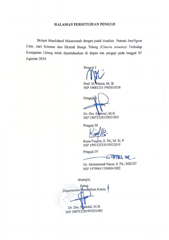 Baca Juga : ANALISIS INTELLIGENT FILM DARI KITOSAN DAN EKSTRAK BUNGA TELANG (CLITORIA TERNATEA) TERHADAP KESEGARAN UDANG (Maulidatul Munawarah, 2024)