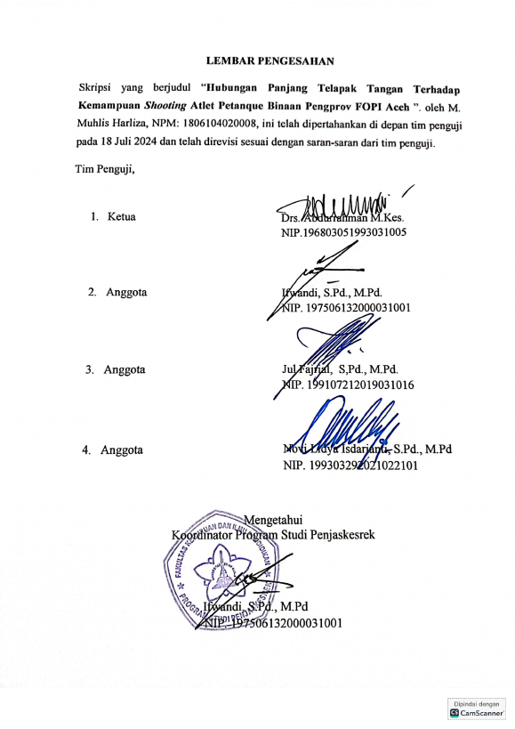 Baca Juga : HUBUNGAN KEKUATAN OTOT LENGAN DENGAN KEMAMPUAN SHOOTING CABANG OLAHRAGA PETANQUE ATLET BINAAN KONI ACEH TAHUN 2024 (Aulia Akbar, 2025)