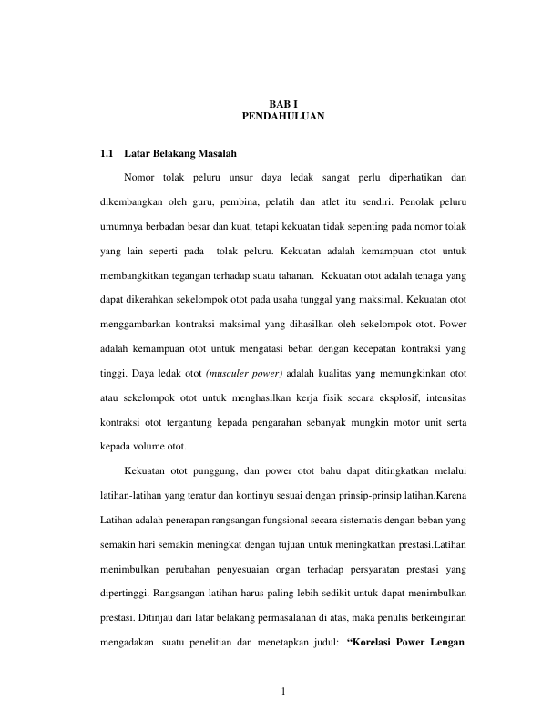 UMAR FAHYUNI, KORELASI POWER LENGAN TERHADAP KEMAMPUAN TOLAK PELURU PADA SISWA SMA NEGERI 1 SUSOH KABUPATEN ACEH BARAT DAYA. Banda Aceh Fakultas Keguruan dan Ilmu Pendidikan,2014