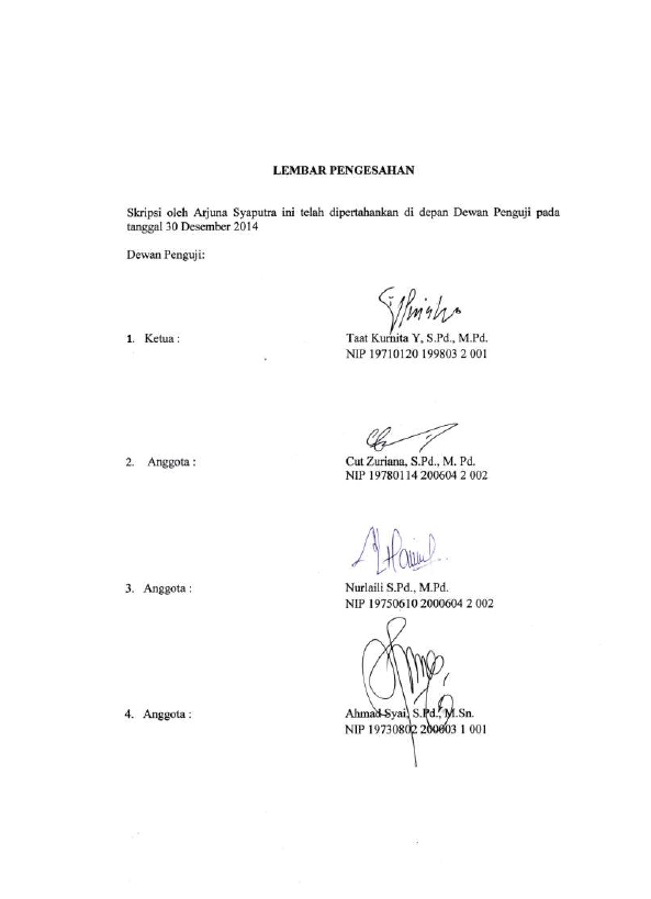Arjuna Syaputra, PELAKSANAAN PEMBELAJARAN SENI BUDAYA DAN RNPRAKARYA (SBDP) SE-KECAMATAN BEBESEN RNDI KABUPATEN ACEH TENGAH. Banda Aceh Universitas Syiah Kuala,2015