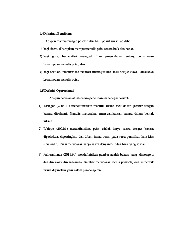 Baca Juga : PERBANDINGAN KEMAMPUAN MENULIS PUISI MELALUI MEDIARNGAMBAR DAN MELALUI MEMBACA TEKS PROSARNSISWA KELAS V SD NEGERI 1 BANDA ACEH (Nurul fuaida, 2015)