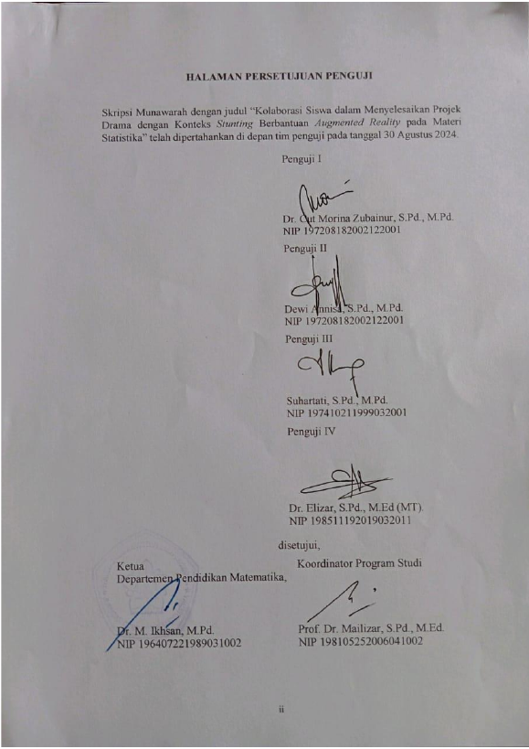 Munawarah, KOLABORASI SISWA DALAM MENYELESAIKAN PROJEK DRAMA DENGAN KONTEKS STUNTING BERBANTUAN AUGMENTED REALITY PADA MATERI STATISTIKA. Banda Aceh Fakultas FKIP,2024