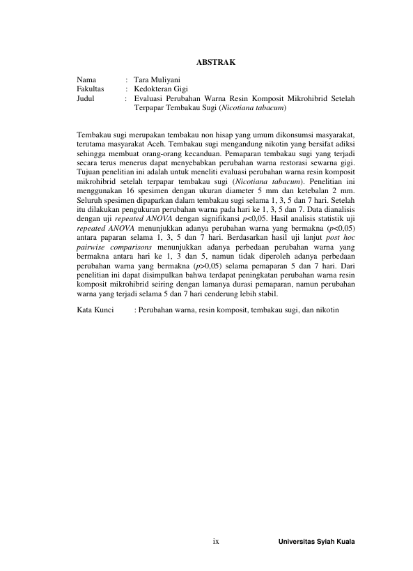 Baca Juga : EVALUASI PERUBAHAN WARNA RESTORASI RESIN KOMPOSIT NANOHYBRLD SETELAH PERENDAMAN DALAM MINUMAN KOPI LUWAK (Teuku Alfian Arbie, 2023)