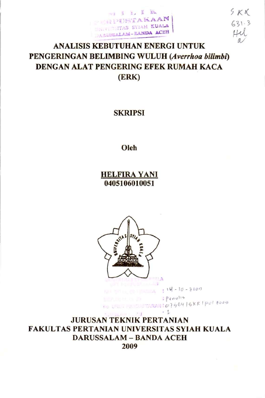 Baca Juga : ANALISIS KEBUTUHAN ENERGI UNTUK PENGERINGAN BELIMBING WULUH (AVERRHOA BILIMBI) DENGAN ALAT PENGERING EFEK RUMAH KACA (ERK) (Helfira Yani, 2024)