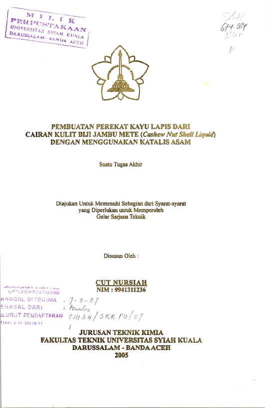 Baca Juga : KONVERSI CAIRAN KULIT BIJI JAMBU METE (CASHEW NUT SHELL LIQUID) MENJADI PEREKAT KAYU LAPIS (PLY WOOD) DENGAN MENGGUNAKAN KATALIS BASA (Rieka Wahyuni, 2024)
