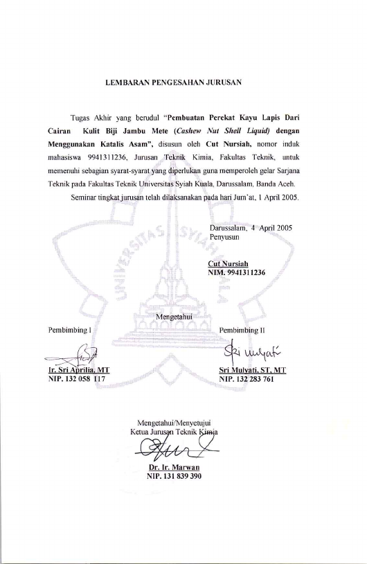 Baca Juga : KONVERSI CAIRAN KULIT BIJI JAMBU METE (CASHEW NUT SHELL LIQUID) MENJADI PEREKAT KAYU LAPIS (PLY WOOD) DENGAN MENGGUNAKAN KATALIS BASA (Rieka Wahyuni, 2024)