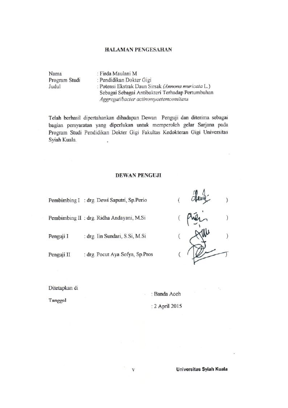 Baca Juga : POTENSI EKSTRAK DAUN SIRSAK (ANNONA MURICATA L) SEBAGAI ANTIBAKTERI TERHADAP PERTUMBUHAN AGGREGATIBACTER ACTINOMYCETEMCOMITANS (Firda Maulani Mawardi, 2015)