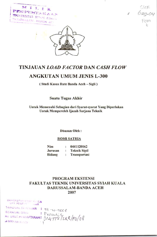 Baca Juga : TINJAUAN LOAD FACTOR DAN WAKTU TEMPUH ANGKUTAN UMUM DI KOTA BANDA ACEH PASCA TSUNAMIRN(STUDI KASUS RUTE KOTA BANDA ACEH - DARUSSALAM) (Teuku Arief Khalifah, 2024)