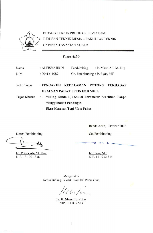 Baca Juga : ANALISA KEAUSAN TEPI PAHAT POTONG FLATTENED END MILL COATED CARBIDES DENGAN VARIASI KECEPATAN POTONG MENGGUNAKAN BENDA KERJA BAJA KARBON SEDANG (Ari Ramadhan, 2015)