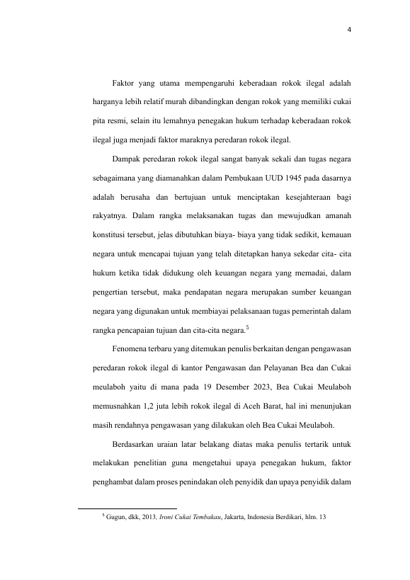 Baca Juga : PENGAWASAN TERHADAP TINDAK PIDANA PENYELUNDUPAN ROKOK TANPA PITA CUKAI (SUATU PENELITIAN DI WILAYAH HUKUM DIREKTORAT JENDERAL BEA DAN CUKAI ACEH) (DINI FATIMAH AFWAR, 2026)