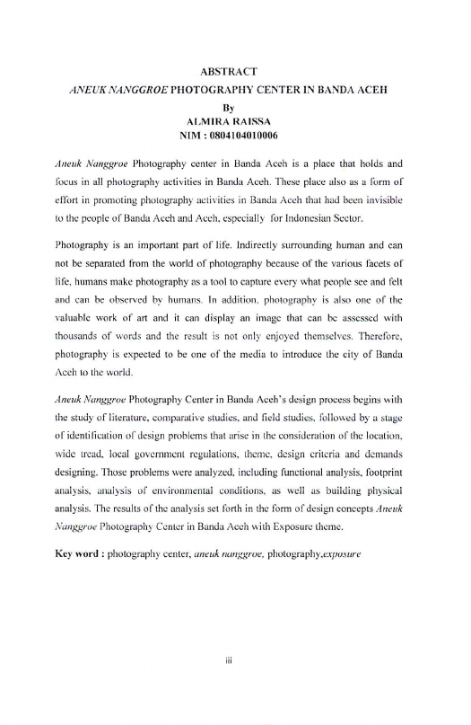 Almira Raissa, PUSAT FOTOGRAFI ANEUK NANGGROE DI BANDA ACEH TEMA : EXPOSURE. Banda Aceh Fakultas Teknik,2013