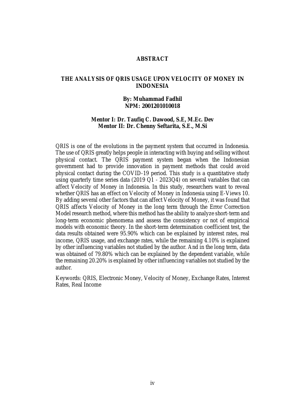 Muhammad Fadhil, ANALISIS PENGGUNAAN QRIS TERHADAP PERPUTARAN UANG (VELOCITY OF MONEY). Banda Aceh Prog.Magister Ilmu Ekonomi Unsyiah,2024