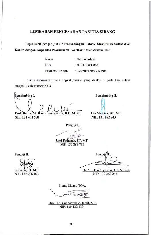 Sari Wardani, PRARANCANGAN PABRIK ALUMINIUM SULFAT DARI KAOLIN DENGAN KAPASITAS PRODUKSI 50 TON/HARI. Banda Aceh Fakultas Teknik,