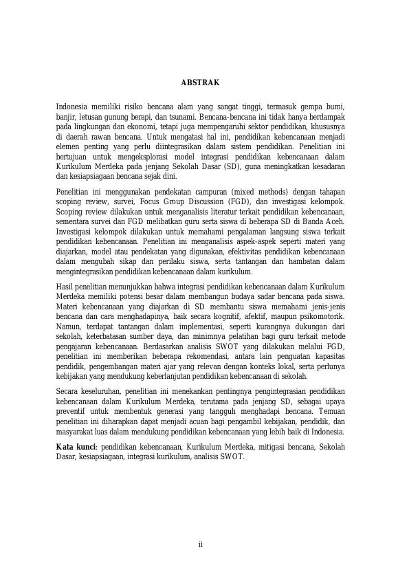 Baca Juga : ANALISIS KEBUTUHAN DAN STRATEGI INTEGRASI PENDIDIKAN KEBENCANAAN KE DALAM KURIKULUM MERDEKA JENJANG SMP (Signorina Kasvia, 2024)