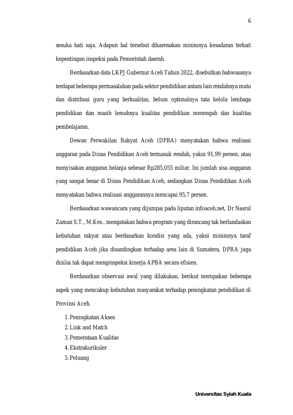 Baca Juga : FUNGSI PENGAWASAN DPRA TERHADAP QANUN NO.9 TAHUN 2015 TENTANG PENYELENGGARAAN PENDIDIKAN (ANNISA DHIASTARI RAMADHANI, 2020)