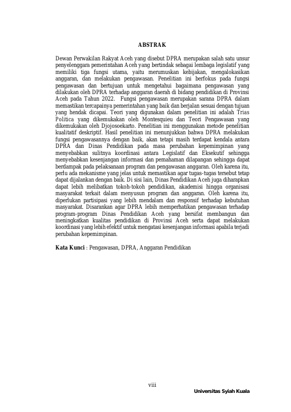 Baca Juga : FUNGSI PENGAWASAN DPRA TERHADAP QANUN NO.9 TAHUN 2015 TENTANG PENYELENGGARAAN PENDIDIKAN (ANNISA DHIASTARI RAMADHANI, 2020)