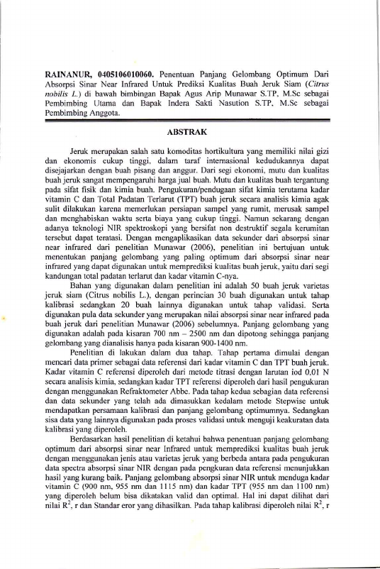 Baca Juga : KALIBRASI TRANSMISI SINAR NEAR INFRARED UNTUK MENGUJI KANDUNGAN TOTAL PADATAN TERLARUT DAN VITAMIN C BUAH JERUK SIAM (CITRUS NOBILIS L.) SECARA NON DESTRUKTIF (Nurisna, 2024)
