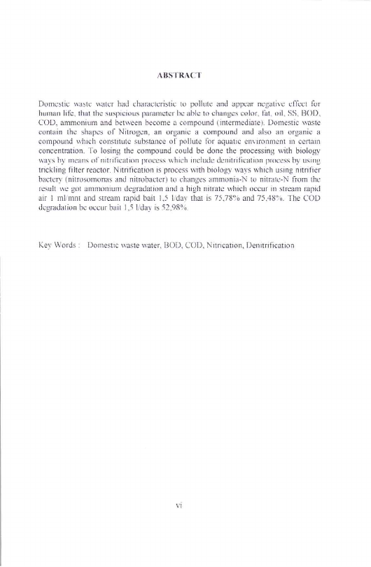 Nunung Lestary, KAJIAN NITRIFIKASI LIMBAH DOMESTIK PADA REAKTOR TRICKLING FILTER. Banda Aceh Fakultas Teknik,2005