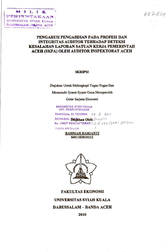 Baca Juga : PENGARUH INDEPENDENSI AUDITOR, INTEGRITAS AUDITOR, PROFESIONALISME AUDITOR, ETIKA PROFESI DAN GAYA KEPEMIMPINAN TERHADAP KINERJA AUDITOR DI BPK PERWAKILAN PROVINSI ACEH (Dwi Sumartono Agung Kurniawan, 2016)