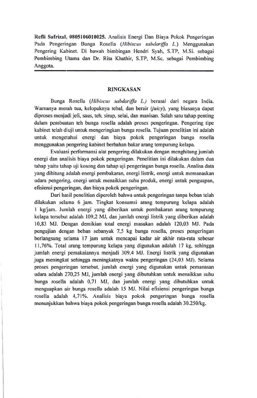 Baca Juga : PENGERINGAN BUNGA ROSELLA (HIBISCUS SABDARIFFA L.) MENGGUNAKAN ALAT PENGERING TIPE KABINET (Teuku Merza Anwari, 2024)