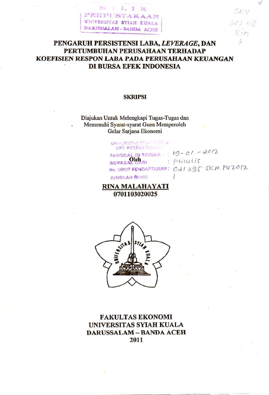 Baca Juga : PENGARUH PERSISTENSI LABA, SPESIALISASI INDUSTRI AUDITOR DAN HUTANG TERHADAP KOEFISIEN RESPON LABA (STUDI PADA PERUSAHAAN MANUFAKTUR YANG TERDAFTAR DI BURSA EFEK INDONESIA) (Rachmad Ihsan, 2024)