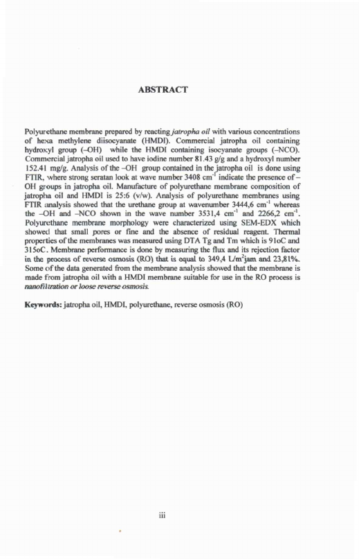 Baca Juga : PEMBUATAN MEMBRAN POLIURETAN DARI MINYAK JARAK (JATROPHA OIL) DAN HEKSA METILEN DIISOSIANAT DENGAN VARIASI SUHU POLIMERISASI (Rahmi, 2014)