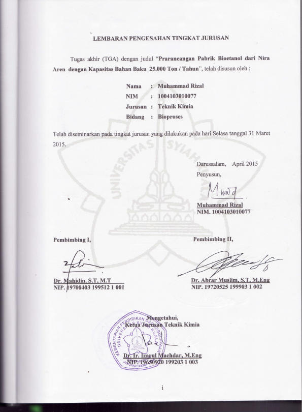 Baca Juga : PRARANCANGAN PABRIK BIOETHANOL DARI JAGUNG DAN UBI KAYU DENGAN KAPASITAS BAHAN BAKU 72.000 TON/TAHUN (Akbar Isratullah, 2014)