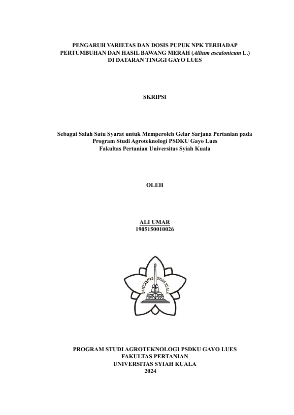Baca Juga : RESPON PERTUMBUHAN DAN HASIL BAWANG MERAH (ALLIUM ASCOLANICUM L.) DI DATARAN TINGGI GAYO LUES AKIBAT VARIETAS DAN JARAK TANAM (Muhammad Haekal, 2025)