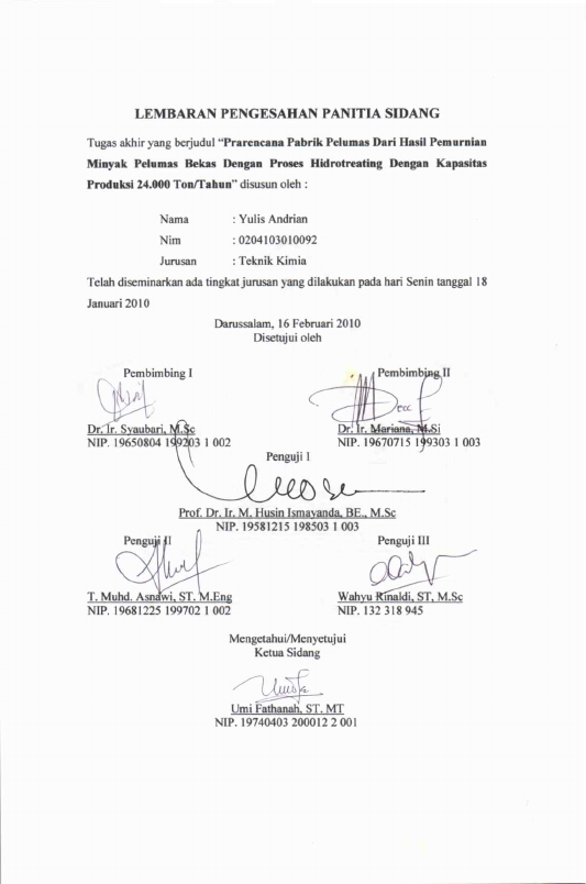 Baca Juga : PRARENCANAAN PABRIK PELUMAS DARI HASIL PEMURNIAN MINYAK PELUMAS BEKAS DENGAN PROSES HIDROTREATING DENGAN KAPASITAS PRODUKSI 24.000 TON/TAHUN (Yulis Andrian, 2024)