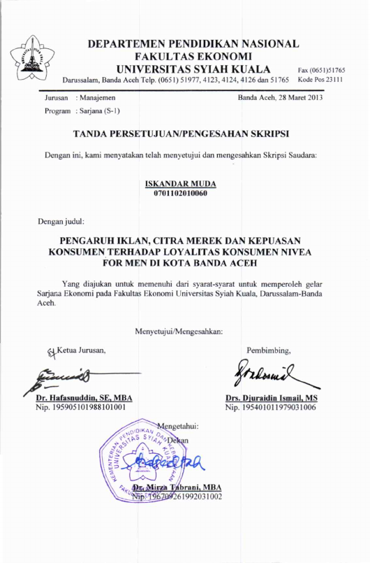 Iskandar muda, PENGARUH IKLAN, CITRA MEREK DAN KEPUASAN KONSUMEN TERHADAP LOYALITAS KONSUMEN NIVEA FOR MEN DI KOTA BANDA ACEH. Banda Aceh Fakultas Ekonomi,