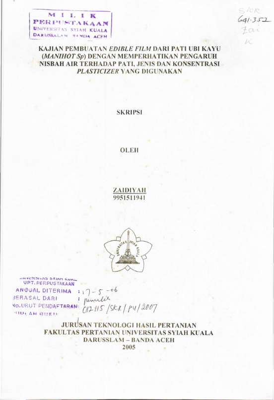 Baca Juga : KAJIAN PEMBUATAN EDIBLE FILM DARI PATI UBI KAYU (MAMHOTSP) DENGAN MEMPERHATIKAN PENGARUH NISBAH AIR TERHADAP PATI, JENIS DAN KONSENTRASI PLASTICIZER YANG DIGUNAKAN (Zaidiyah, 2024)