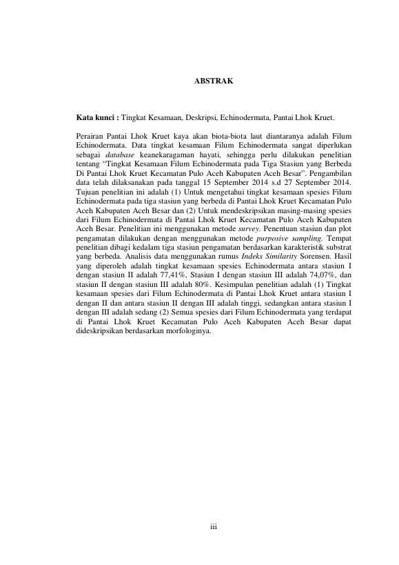 Baca Juga : DESKRIPSI MORFOLOGI DAN POLA DISTRIBUSI SPASIAL DARI FILUM ECHINODERMATA DI PANTAI LAMPUYANG KECAMATAN PULO ACEH KABUPATEN ACEH BESAR (Nurul Mawaddah, 2014)