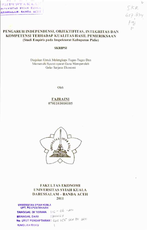Baca Juga : PENGARUH KOMPETENSI, INDEPENDENSI,RNOBYEKTIVITAS, KECERMATAN PROFESIONAL, DANRNPENGALAMAN AUDIT TERHADAP KUALITAS AUDITRN(STUDI PADA PEMERIKSA INSPEKTORAT KABUPATEN/KOTA DI ACEH) (NASRIANA, 2015)
