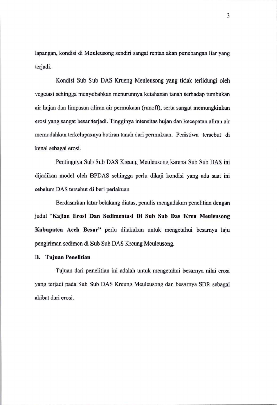 Dona Saputra, KAJIAN EROSI DAN SEDIMENTASI DI SUB SUB DAS KRUENG MEULEUSONG KABUPATEN ACEH BESAR. Banda Aceh Fakultas Pertanian,2010