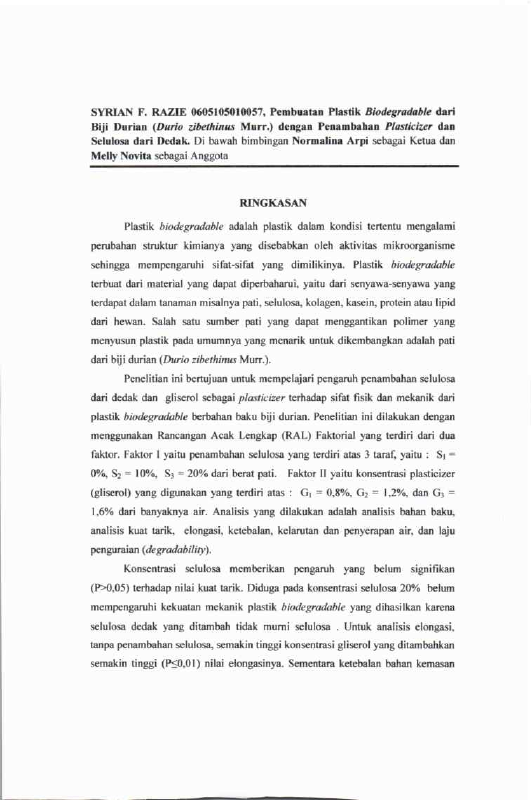 Baca Juga : PEMBUATAN PLASTIK BIODEGRADABLE DARI PATI SAGU DENGAN PENAMBAHAN SERAT SELULOSA (Zahratul Amal, 2024)
