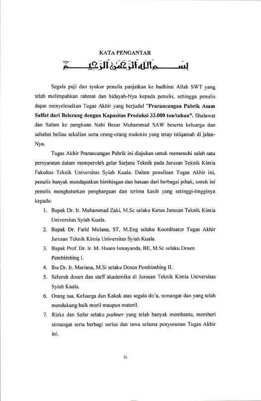 Cut Rita Mainita, PRARANCANGAN PABRIK ASAM SULFAT DARI BELERANG DENGAN KAPASITAS PRODUKSI 33.000 TON/TAHUN. Banda Aceh Fakultas Teknik,
