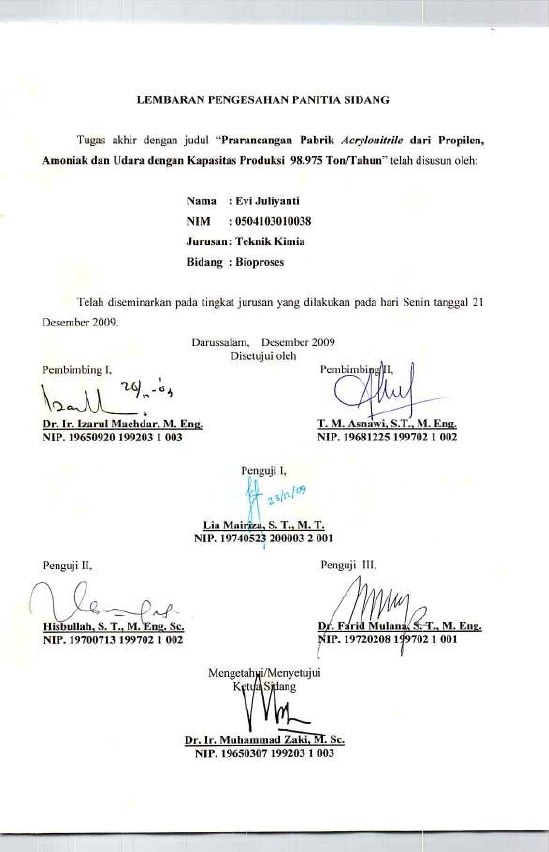 Evi Juliyanti, PRARANCANGAN PABRIK ACRYLONITRILE DARI PROPILEN, AMONIAK DAN UDARA DENGAN KAPASITAS PRODUKSI 98.975 TON/TAHUN. Banda Aceh Fakultas Teknik,