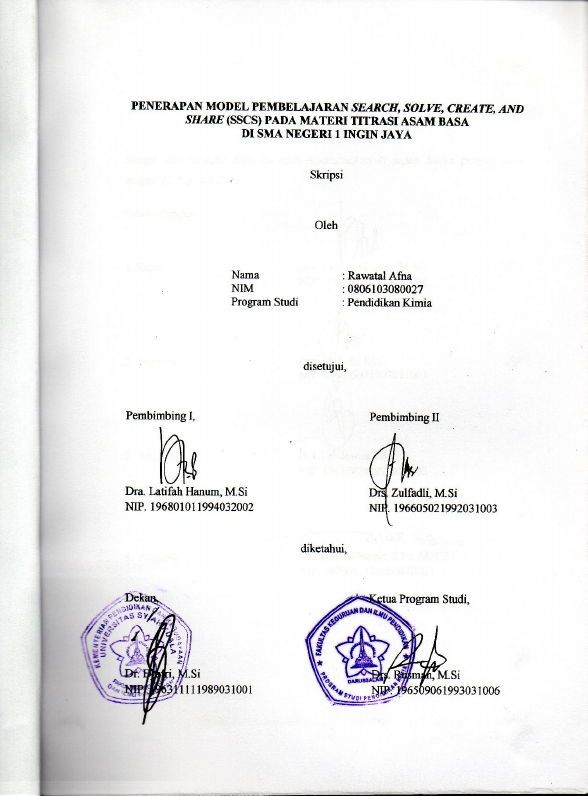 Baca Juga : PENERAPAN MODEL PEMBELAJARAN SEARCH, SOLVE, CREATE AND SHARE (SSCS) PADA MATERI KOLOID DI KELAS XI SMA NEGERI 12 BANDA ACEH (Sri Utami, 2016)