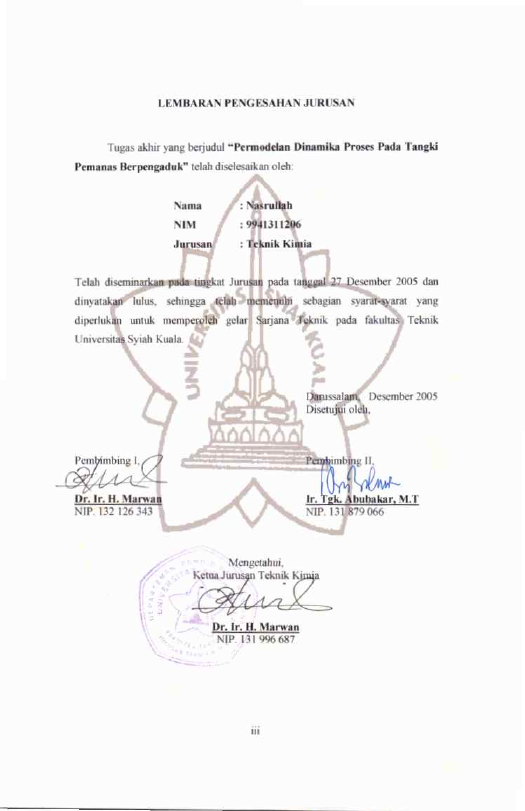 Nasrullah, PERMODELAN DINAMIKA PROSES PADA TANGKI PEMANAS BERPENGADUK. Banda Aceh Fakultas Teknik,2005