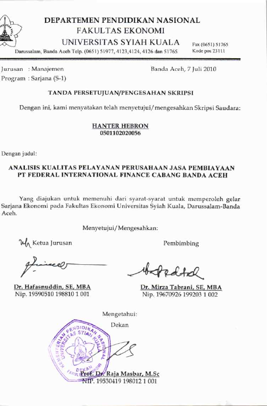 Hanter Hebron, ANALISIS KUALITAS PELAYANAN PERUSAHAAN JASA PEMBIAYAAN PT FEDERAL INTERNATIONAL FINANCE CABANG BANDA ACEH. Banda Aceh Fakultas Ekonomi,2010