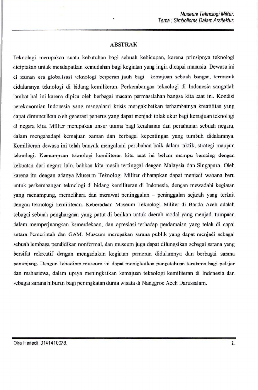 Oka Hariadi, MUSEUM TEKNOLOGI MILITER DI BANDA ACEH. Banda Aceh Fakultas Teknik,