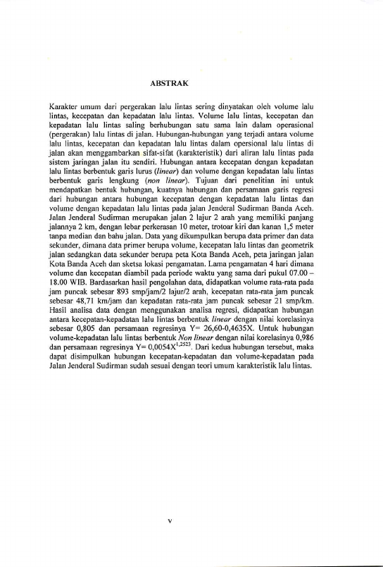 Reni Musita, TINJAUAN HUBUNGAN KARAKTERISTIK LALU LINTAS PADA JALAN JENDERAL SUDIRMAN BANDA ACEH (HUBUNGAN KECEPATAN--KEPADATAN DAN VOLUME-KEPADATAN). Banda Aceh Fakultas Teknik,2009