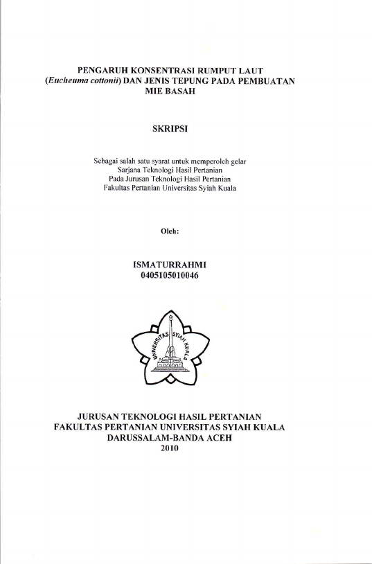 Baca Juga : PENGARUH KONSENTRASI RUMPUT LAUT (EUCHEUMA COTTONI) DAN JENIS TEPUNG PADA PEMBUATAN MIE BASAH (Ismaturrahmi, 2024)