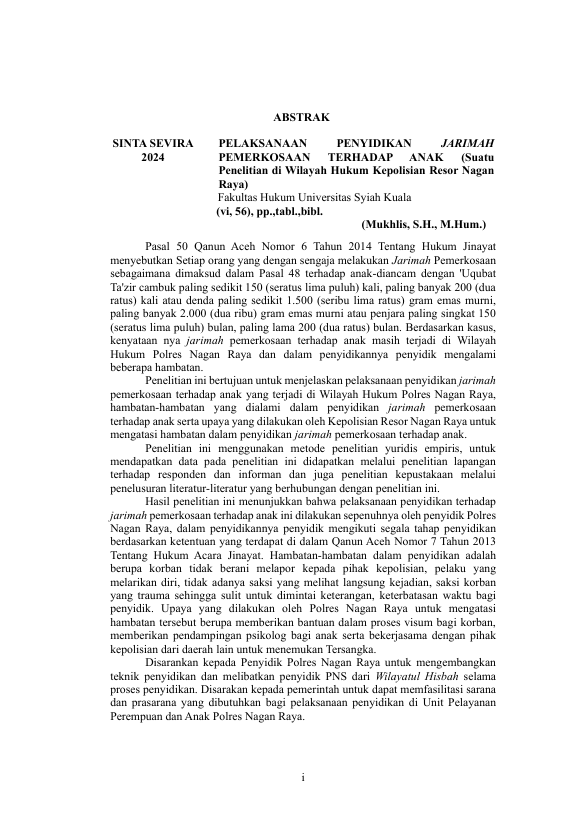 Baca Juga : PENYIDIKAN JARIMAH PERCOBAAN PEMERKOSAAN (SUATU PENELITIAN DI WILAYAH HUKUM KEPOLISIAN RESOR BANDA ACEH) (FARA FAIZAH AURELIA, 2026)